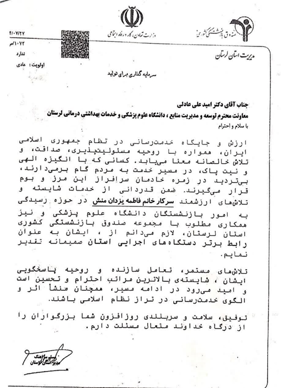قدردانی مسلم سراهنگ رئیس صندوق بازنشستگی استان از فاطمه یزدان منش بعنوان رابط برتر دستگاههای اجرایی استان